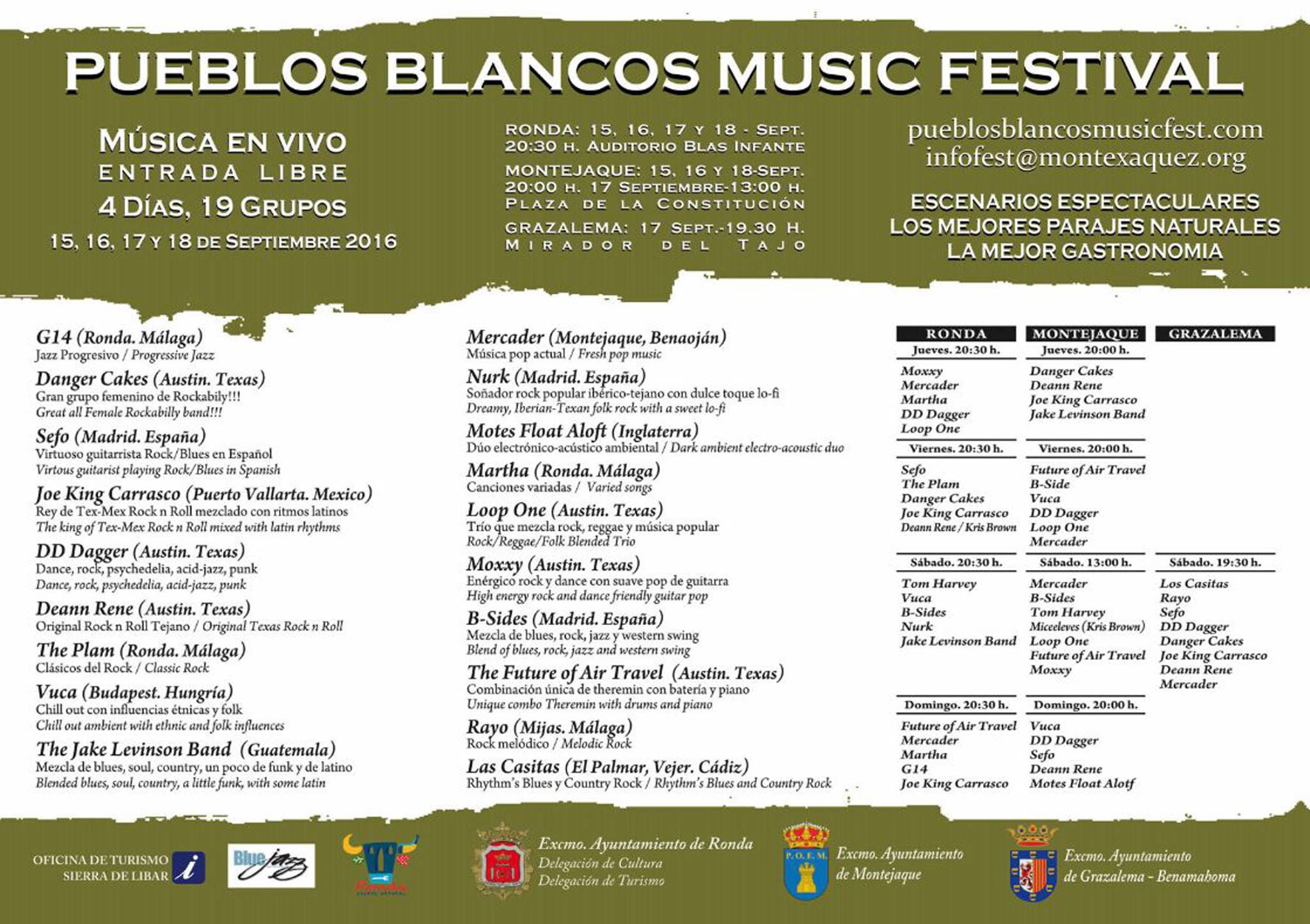 La plaza será el eje central donde tendrá lugar una paella popular para los asistentes a este día, así como actuaciones musicales de diversos grupos internacionales y nacionales, ya que Montejaque durante estos días será uno de los municipios donde se celebra el I Pueblos Blancos Music Festival, el cual es el primer encuentro cultural y musical de estas características en España y pionero en Europa, donde van a coincidir músicos y bandas internacionales para compartir su música y ofrecer conciertos gratuitos para músicos y aficionados que quieran asistir.